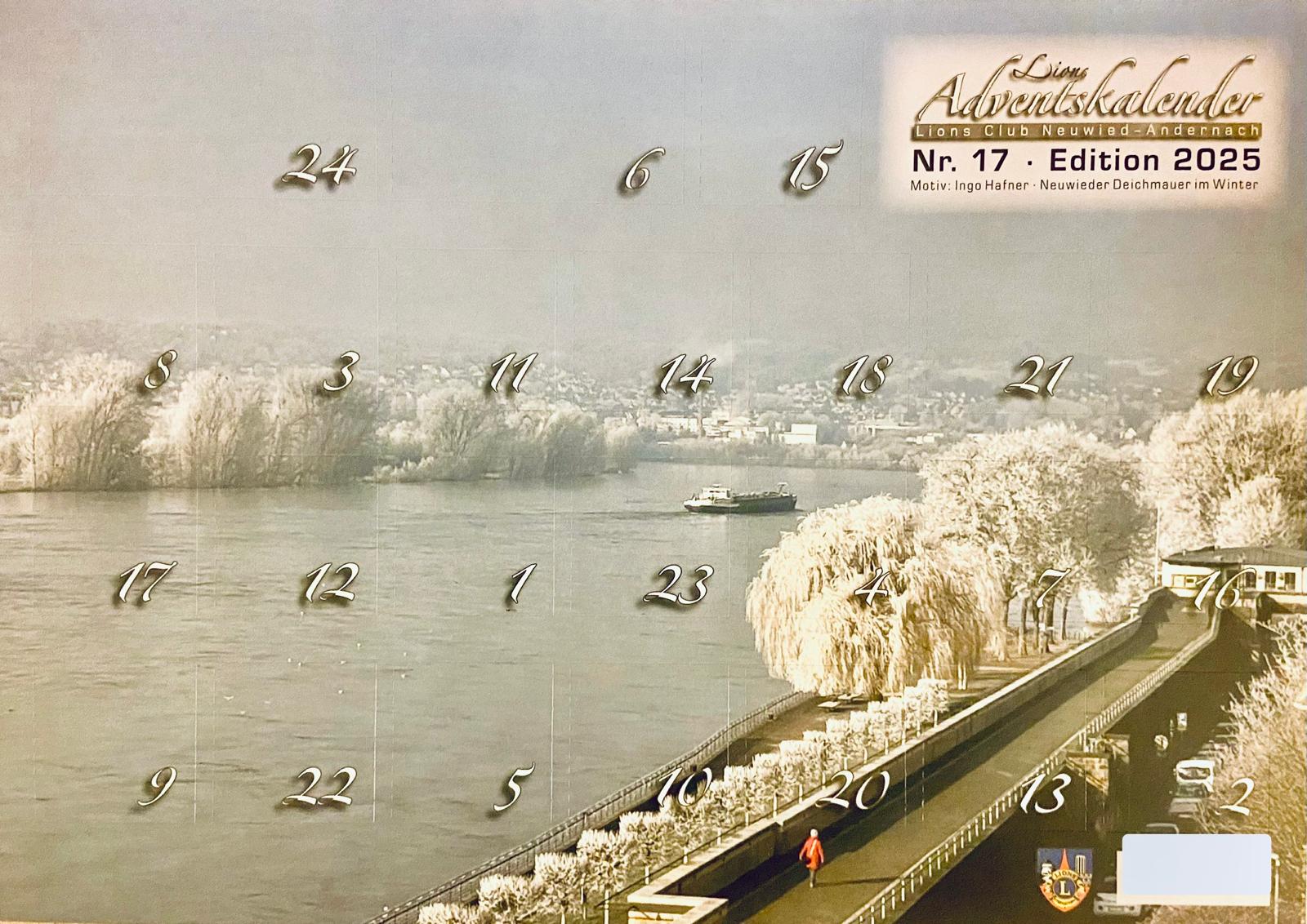 Der Kalenderverkauf startet wie gewohnt während der Neuwieder Markttage am 11. und 12. Oktober am Bücherstand des Lionsclub. Zusätzlich ist der Verkauf der Adventskalender zeitgleich in folgenden Geschäften der Neuwieder Innenstadt sowie im Andernacher Einzelhandel, in Apotheken und bei Banken und Sparkassen möglich: